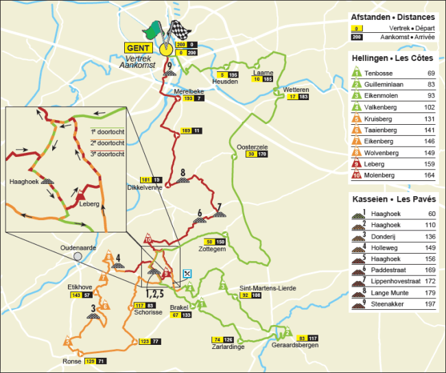 Y es que en esta importante carrera belga, de categoría HC, se recorren buena parte de las carreteras y muros que, más de un mes después, serán escenario de batallas en el prestigioso monumento Ronde van Vlaanderen (Tour de Flandes), el cual en 2012 estrena recorrido con bastante polémica.