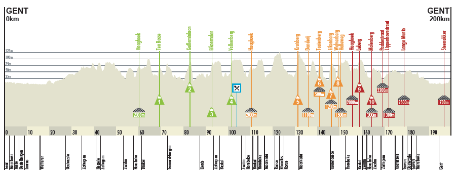 Como es habitual, la salida y la llegada serán en la capital de Flandes Oriental, Gante. Tan sólo 12 ediciones de la carrera han finalizado en otra localidad: Lokeren, desde 1996 hasta 2007, para posteriormente recuperar la llegada en Gante. El recorrido se realizará íntegramente por la provincia, pasando por las localidades meridionales Ronse y Geraardsbergen, en el límite con la región valona, y atravesando otros puntos neurálgicos como Brakel, Zottegem u Oudenaarde.