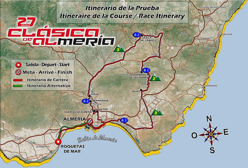 Seguiría siendo un trazado favorable para los hombre rápidos, pero habría mucho más desgaste y posibilidades para las escapadas y movimientos tácticos, con mayor incertidumbre sobre la resolución final. Y no podría haber ninguna pega de cara a la financiación, ya que se pasaría por todos los sprints intermedios y localidades patrocinadoras del trazado original (Huercal de Almería, Viator, Benahadux, Rioja, Uleila del Campo, Lucainena de las Torres y Níjar) y se añadirían cuatro pequeños municipios de la Sierra de los Filabres (Tahal, Alcudia de Monteagud, Benitaglia y Benizalón). Completaríamos así un recorrido por los diversos paisajes de esta hermosa provincia.