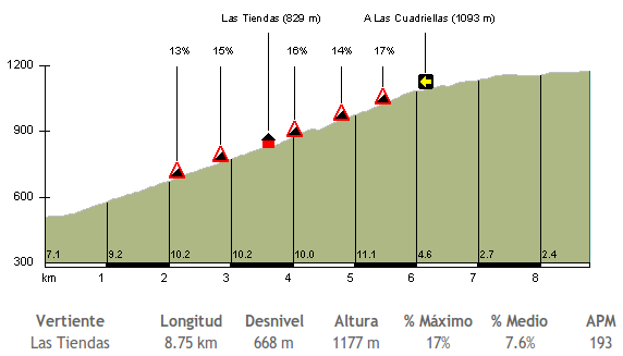 Hace no mucho publicamos un exhaustivo artículo sobre el Santuario del Acebo, especialmente sobre sus dos vertientes más duras y que superan los 240 APM. Sin embargo, después de publicarlo nos dimos cuenta que nos habíamos olvidado de un final diferente y muy interesante, dándole protagonismo a la vertiente de Las Tiendas y sus 7 km al 8,9%, con un duro tramo central de 5 km al 10,1% de media.