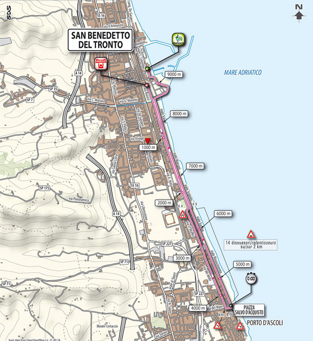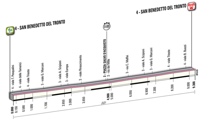 7ª ETAPA (Martes 13 Marzo): SAN BENEDETTO DEL TRONTO – SAN BENEDETTO DEL TRONTO (C.R.I.) (9,3 km). Rutómetro / Salida / Llegada / Últimos km