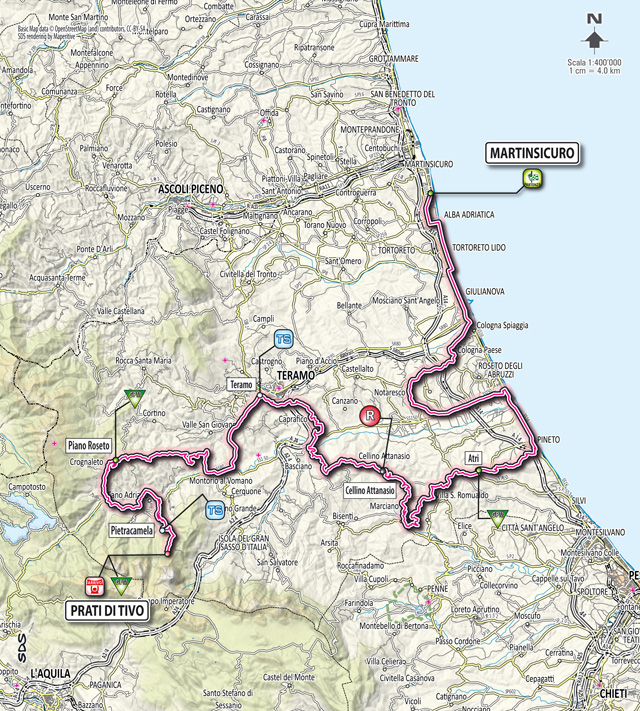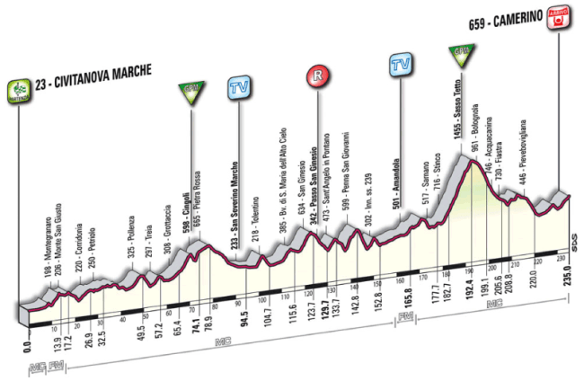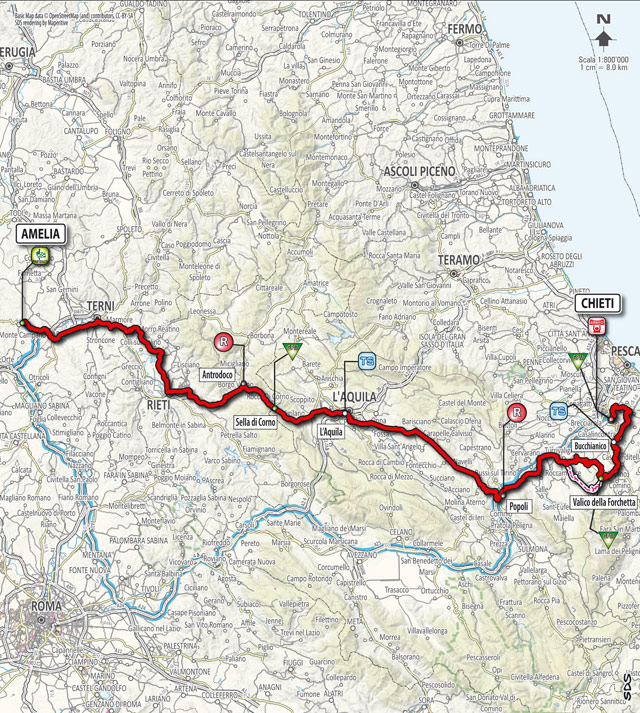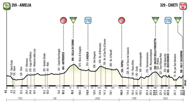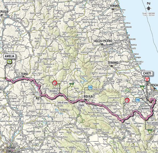 4ª ETAPA (Sábado 12 Marzo): NARNI – CHIETI (240 km). Rutómetro / Salida / Llegada