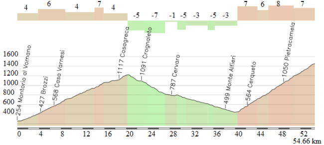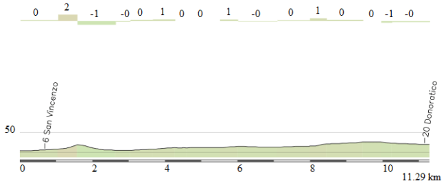 Mutignano -np- (km 57): 286 m – 5,4 km – 5,2 %
