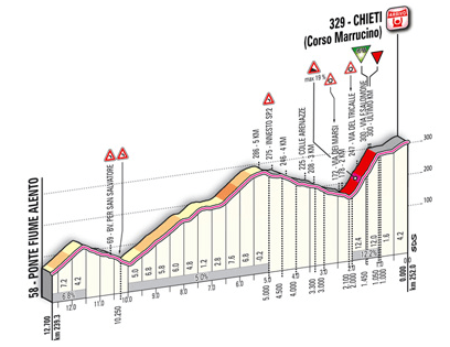 En caso de que no fuera posible atravesar Lanciano, una buena alternativa sería repetir el tramo de Scafa a Chieti que se hizo en 2010, con unos km finales muy exigentes: