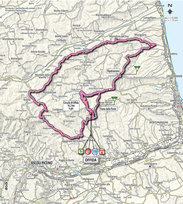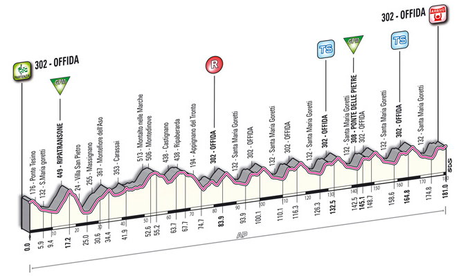 6ª ETAPA (Lunes 12 Marzo): OFFIDA – OFFIDA (181 km). Rutómetro / Salida / Llegada