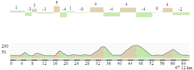 Atención también a su complicado descenso -> vídeo, que ya el año pasado resultó clave en el desarrollo de la prueba, con caídas de varios de los favoritos, cortando el grupo y seleccionando mucho la carrera. Después de su bajada vuelve a haber muchos km de llano antes de la siguiente dificultad orográfica, los tres «Capos», aunque de ellos sólo Capo Berta tiene cierta dureza, con 2,5 km al 5 %.