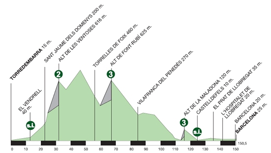 6ª ETAPA (Sábado 24):  SANT FRUITOS DE BAGES – BADALONA (CENTRE COMERCIAL MAGIC)  (169,4 km).  Perfil oficial / Mapa interactivo y rutómetro