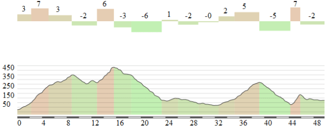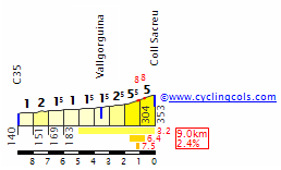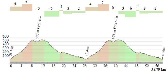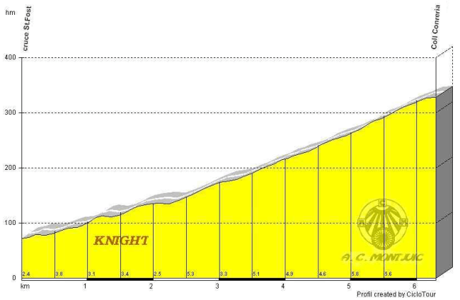 • Alt de Sant Feliu Saserras, 3ª (km 57,1):  687 m – 7,1 km – 2,8 %