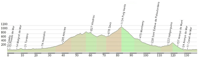 1ª ETAPA (Lunes 19):  CALELLA – CALELLA (138,9 km).  Perfil oficial / Mapa interactivo y rutómetro