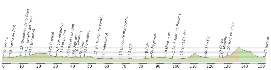 2ª ETAPA (Martes 20):  GIRONA – GIRONA  (161 km).  Perfil oficial / Mapa interactivo y rutómetro