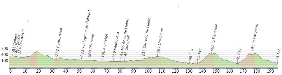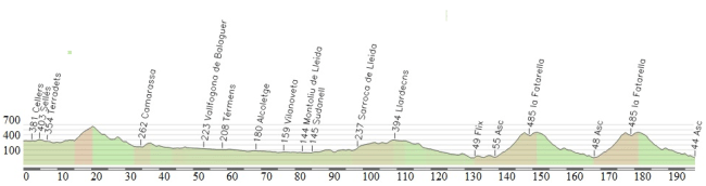4ª ETAPA (Jueves 22):  TREMP – ASCÓ «LA VOSTRA ENERGIA»  (199 km).  Perfil oficial / Mapa interactivo y rutómetro