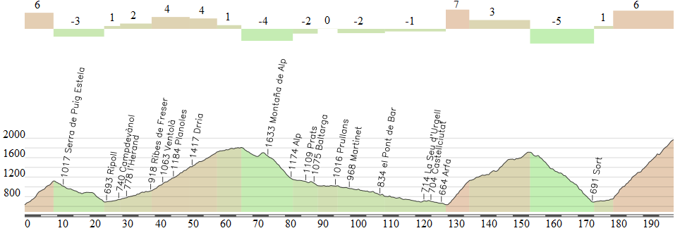 • L´Estany, np (km 76):  870 m – 9,7 km – 3,7 %   (cifras no oficiales)