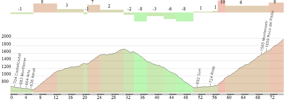• Alt d´Orista, np (km 63,7):  588 m – 1,8 km – 7,6 %  (cifras no oficiales)