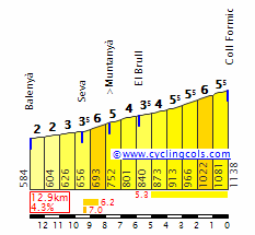 • Coll Formic, 1ª (km 82,2):  1.145 m – 9,2 km – 4 %
