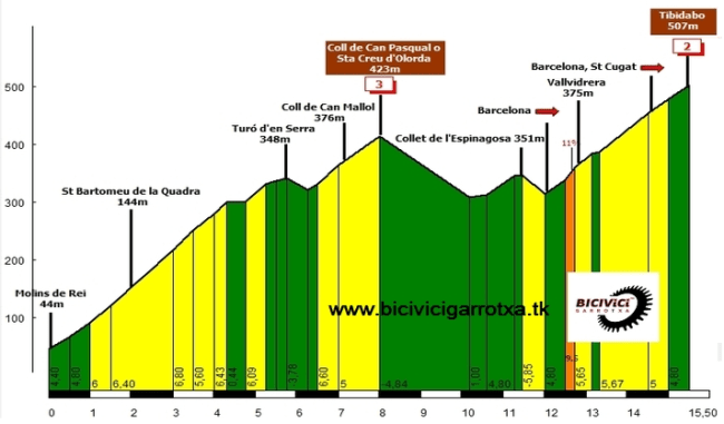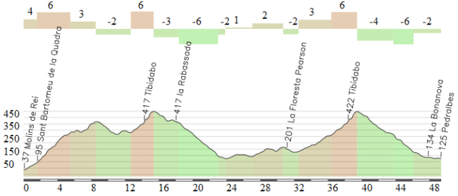 Los últimos 40 km de la etapa, con Olorda + Tibidabo y Vallvidrera