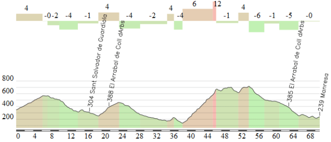 • Alt de Castellbisbal, 3ª (km 69,1):  170 m – 1,9 km – 5 %