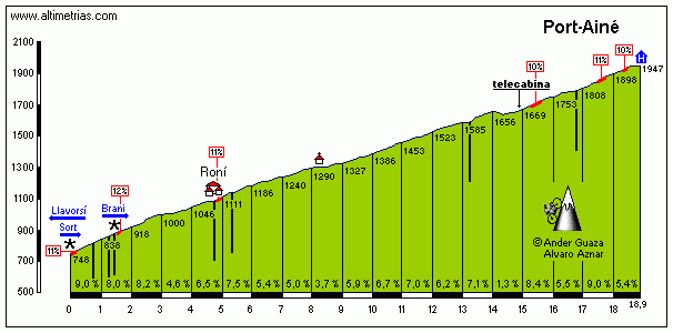 • Port Ainé, Es (Meta):  1.947 m – 18,9 km – 6,5 %