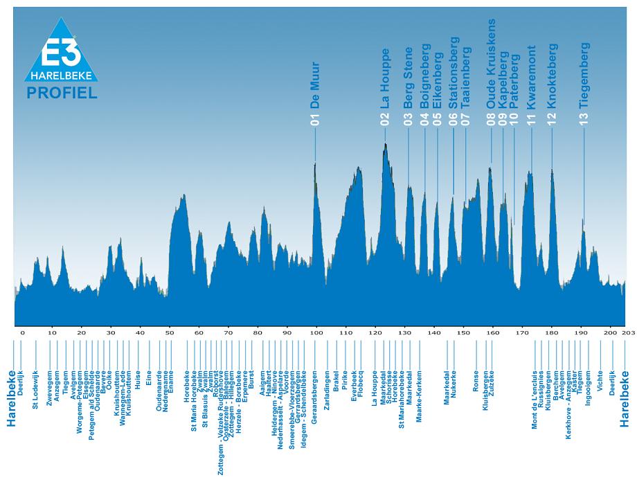 El viernes 23 de marzo se disputa la 55ª edición de una de las semiclásicas más interesantes del circuito internacional, la E3 Prijs Harelbeke: una carrera marcada por sus “muros” y tramos de pavé, que suele servir de importante toma de contacto para los clasicómanos de cara a Ronde Van Vlaanderen (Tour de Flandes) y la Paris-Roubaix. Pero también goza de un importante prestigio por sí sola. Sobre todo este año, que ha sido ascendida de categoría y ya forma parte del World Tour.
