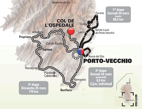 3ª ETAPA (Domingo 25 Marzo): PORTO VECCHIO – COL DE L´OSPEDALE (179 km). Rutómetro