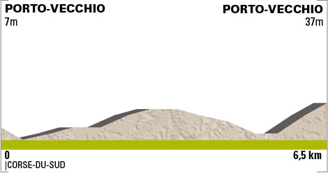 El segundo sector de la primera jornada es una contrarreloj individual, de nuevo en la ciudad de Porto Vecchio, con un recorrido de sólo 6,5 km pero bastante ondulado, siendo una crono muy favorable para los rodadores «explosivos». De todos modos, la corta distancia hace que en condiciones normales no se vayan a producir grandes diferencias, quedando una general muy apretada de cara a la jornada del domingo.