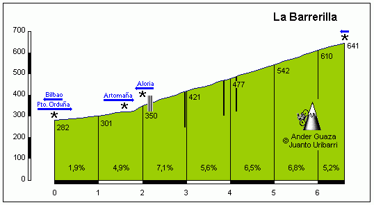 La Barrerilla, la subida más dura de la etapa aunque a más de 100 km de meta. Perfil de APM, click para ver una descripción detallada.