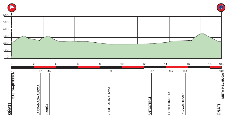 6ª ETAPA (Sábado 7 Abril):  OÑATI – OÑATI  C.R.I. (18,9 km).  Rutómetro y horarios