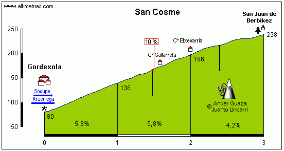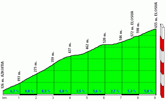 Elosua/Gorla, el puerto más duro de la etapa aunque lejos de meta. Perfil de goierrike.net.