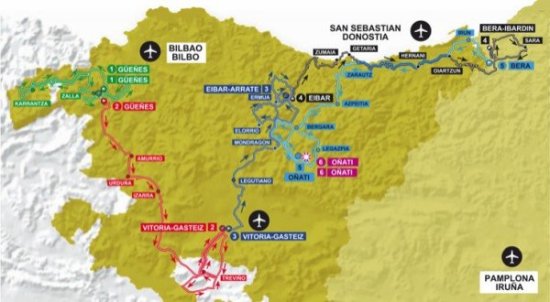 Un trazado exigentepero que al igual que sucedía en 2011 resulta decepcionante (al menos en nuestra opinión), sobre todo teniendo en cuenta las grandes posibilidades del País Vasco y Navarra. Los puertos más importantes están colocados de tal modo que difícilmente habrá lucha entre los favoritos lejos de meta, quedando todo para los km finales de Arrate, Ibardin y la C.R.I. de Oñati. Y no es un problema de dureza total (aunque no estaría mal aumentarla, sobre todo los kilometrajes, excesivamente cortos) sino de como están diseñadas las etapas concretas y la carrera en general, de nuevo con la crono situada en el lugar más perjudicial posible, aunque al menos su longitud, 19 km, no es tan excesiva en comparación con la montaña como otros años.