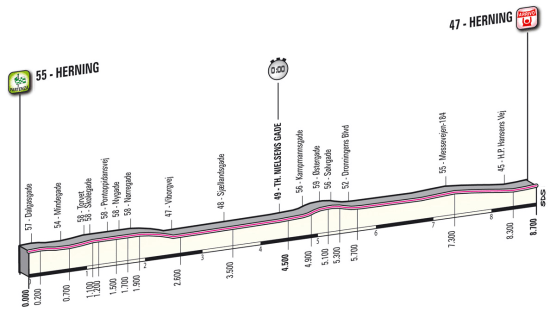 1ª ETAPA (Sábado 5 Mayo): HERNING – HERNING (8,7 km) (C.R.I.). Rutómetro / Últimos km