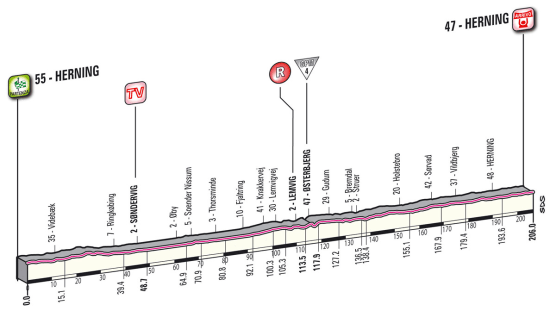 2ª ETAPA (Domingo 6 Mayo): HERNING – HERNING (206 km). Rutómetro / Últimos km