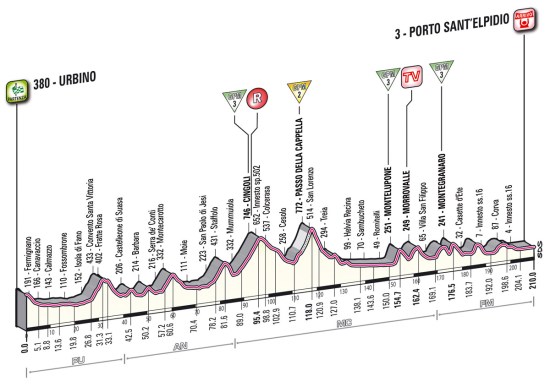 6ª ETAPA (Viernes 11 Mayo): URBINO – PORTO SANT´ ELPIDIO (210 km). Rutómetro / Últimos km