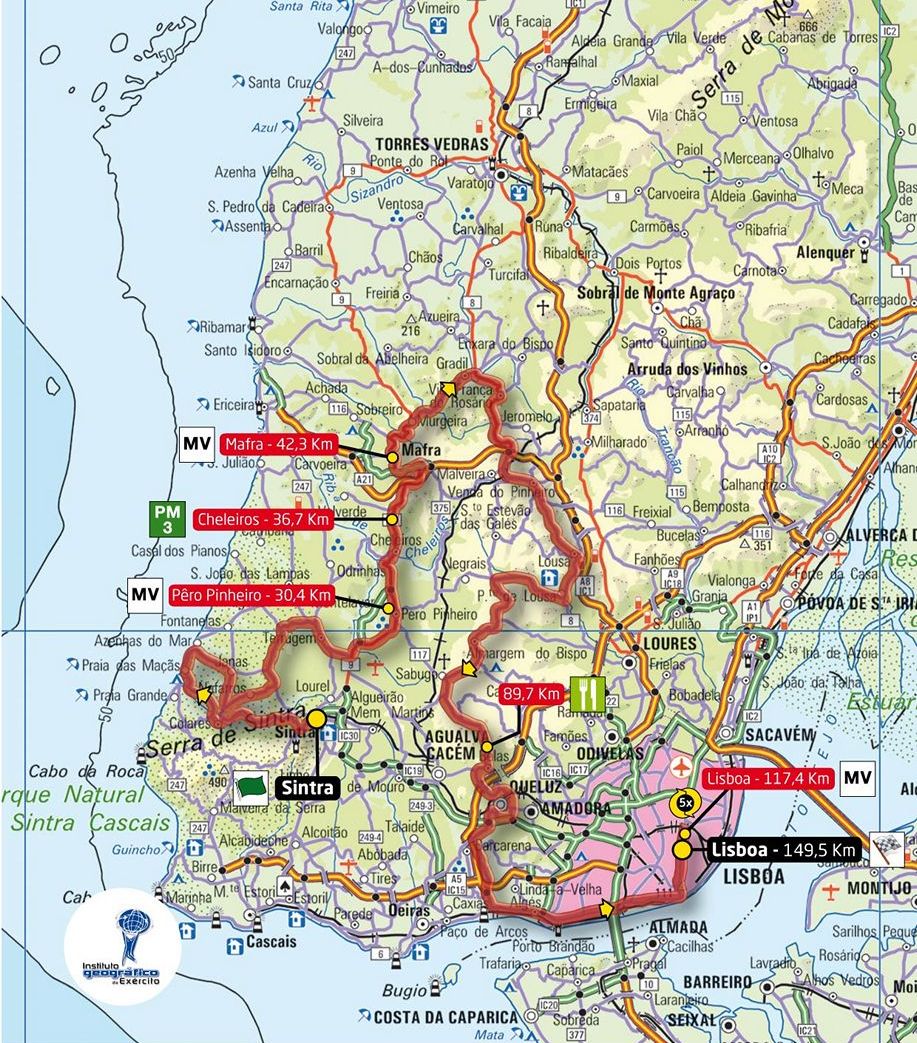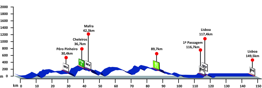 10ª ETAPA (Sábado 25 agosto): SINTRA – LISBOA (149,5 km). Rutómetro / Perfil últimos km / Mapa salida – llegada