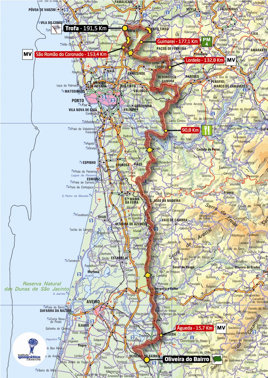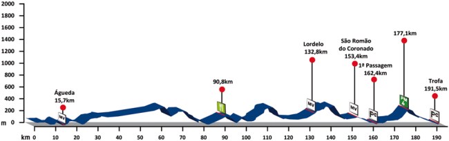 2ª ETAPA (Viernes 17 agosto): OLIVEIRA DO BARRO – TROFA (191,5 km). Rutómetro / Perfil últimos km / Mapa salida – llegada
