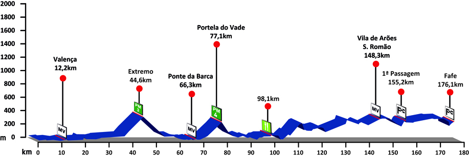 3ª ETAPA (Sábado 18 agosto): VILA NOVA DE CERVEIRA – FAFE (176,1 km). Rutómetro / Perfil últimos km / Mapa salida – llegada