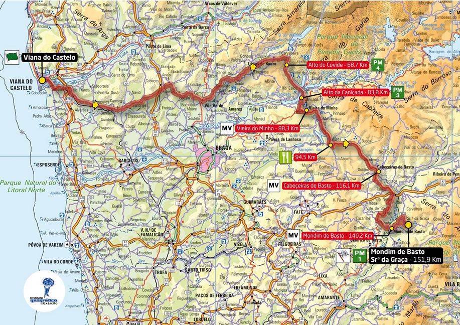 4ª ETAPA (Domingo 19 agosto): VIANA DO CASTELO – MONDIM DO BASTO (SRA. DA GRACA) (151,9 km). Rutómetro / Perfil últimos km / Mapa salida – llegada