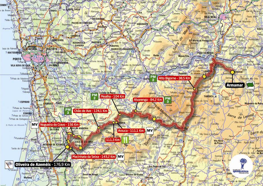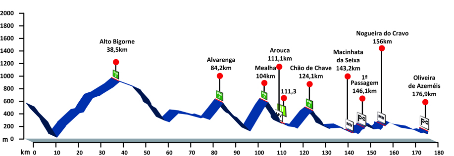 5ª ETAPA (Lunes 20 agosto): ARMAMAR – OLIVEIRA DE AZEMÉIS (176,9 km). Rutómetro / Perfil últimos km / Mapa salida – llegada