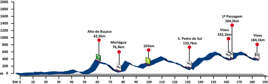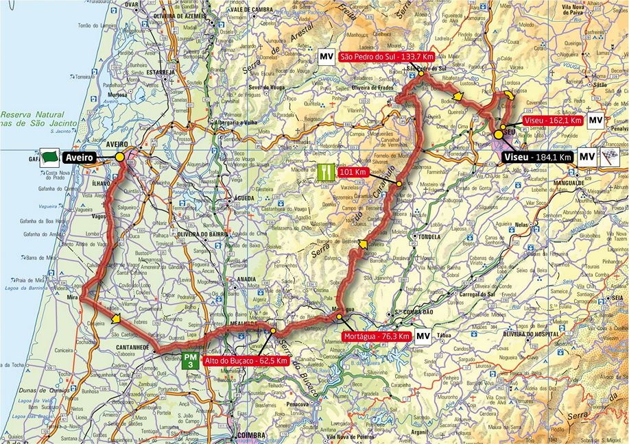 6ª ETAPA (Martes 21 agosto): AVEIRO – VISEU (184,1 km). Rutómetro / Perfil últimos km / Mapa salida – llegada