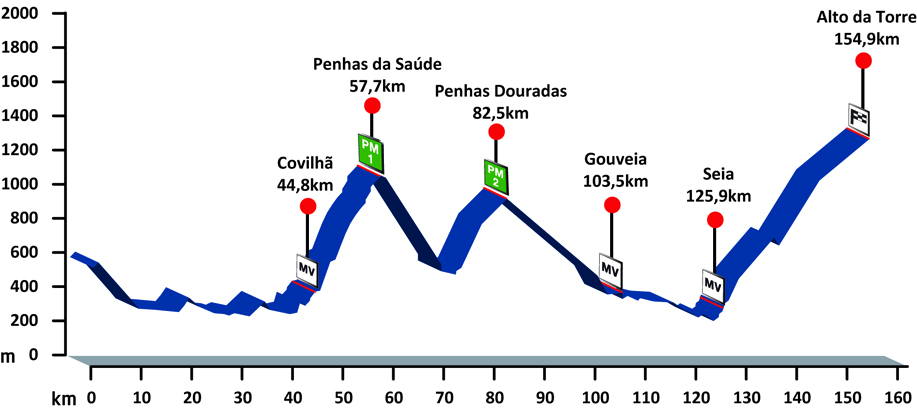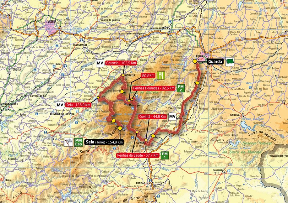 8ª ETAPA (Jueves 23 agosto): GUARDA – SEIA (TORRE) (154,9 km). Rutómetro / Perfil últimos km / Mapa salida – llegada