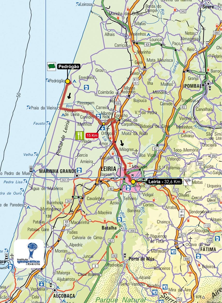 9ª ETAPA (Viernes 24 agosto): PEDRÓGAO – LEIRIA (32,6 km) (C.R.I). Rutómetro / Mapa salida – llegada