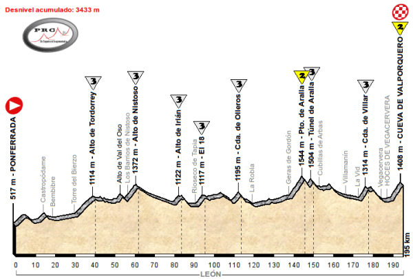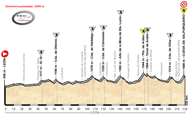 Ya solo resta por superar un terreno muy rápido hasta Villamanín, la tendida Collada de Cármenes (5 km al 4,2%, max. 12%) y el final en alto en Valporquero donde decidir la etapa y ver la lucha final entre los favoritos.