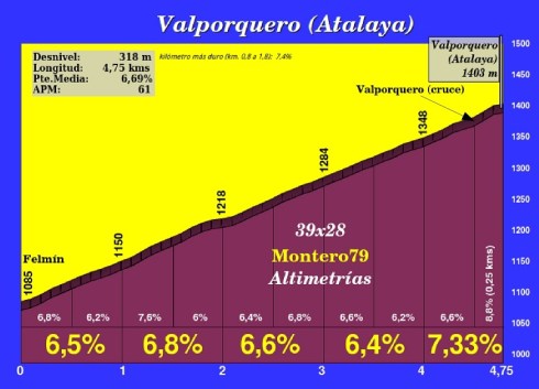 El ascenso a Valporquero. Perfil de 39×28, click para ver descripción y fotos.