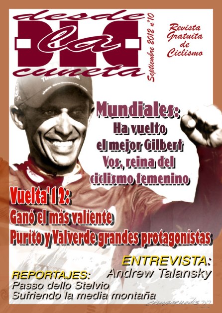 Ya está disponible el número 10 de la revista «Desde la Cuneta», centrado en la Vuelta 2012 y en un Mundial en el que Vos y Gilbert han sido los protagonistas. Lo puedes descargar o visualizar gratis en el siguiente enlace: