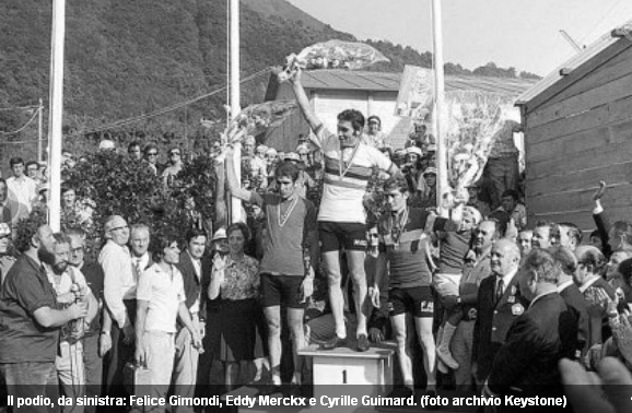El Giro de Italia terminó convirtiéndose en otra victoria más … pero apareció un nuevo rival, que con su victoria en el BlockHaus en la 4ª etapa revolucionaba la carrera. Era español, un poco brabucón y con una osadía tremenda: «el Tarangu», Jose Manuel Fuente, un corredor tan irregular como genial. Sin embargo el caníbal ponía las cosas en su sitio en una cabalgada espectacular en la 7ª etapa, recuperando la maglia y cediendo el triunfo de etapa a su compañero de escapada Gösta Andersson. Pero Fuente no se dio por vencido y en la 14ª etapa, camino de Jafferau, atacó desde lejos en Sestriere poniendo contra las cuerdas a Merckx … hasta que un desfallecimiento del Tarangu en Jafferau hizo que Merckx lo adelantara a un kilómetro de meta y se llevara la etapa, aumentando su distancia en la general. Cabe señalar que en el Giro 2013 habrá una etapa con una parte final idéntica a ésta, aunque con menor kilometraje total.