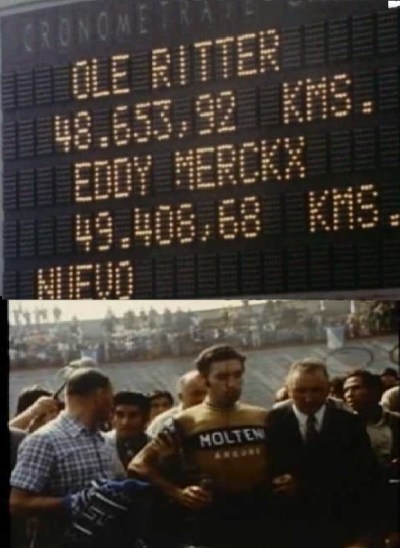 El velódromo Agustín Melgar, creado para la Olimpiadas de 1968, y de una longitud de 333,3 metros, estaba preparado, el mal tiempo ya había pasado y el día era excepcional. Era definitivamente la jornada para asaltar la marca de Ritter, y Merckx viendo las buenas condiciones climáticas dijo que adelante. Una vez terminado el calentamiento momento para la concentración …