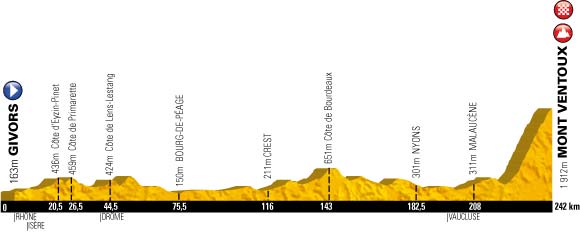 15ª ETAPA (Domingo 14 Julio):  GIVORS – MONT VENTOUX  (242 km)