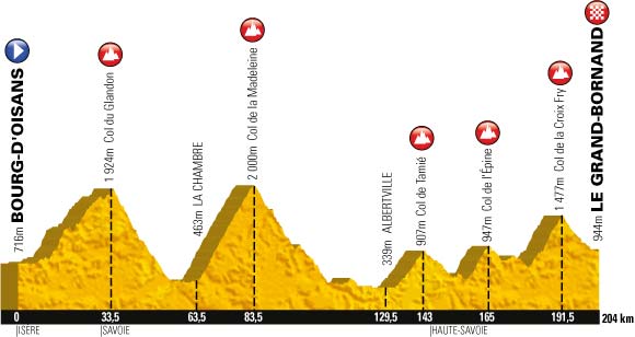 19ª ETAPA (Viernes 19 Julio):  BOURG D´OISANS – LE GRAND BORNAND  (204 km)
