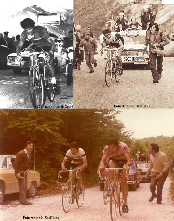 Sin duda, las imágenes más representativas e icónicas de esta cumbre en el Giro de Italia son las protagonizadas por Merckx en 1968 y por Fuente, Baronchelli y el propio Merckx 6 años más tarde, en 1974.