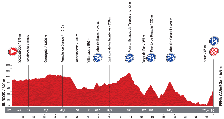 Tras el último día de descanso, etapa relativamente llana entre Calahorra y Burgos, incluyendo los puertos de la Pradilla y Valmala aunque muy lejos de meta, siendo a priori una jornada con oportunidades tanto para los «aventureros» como para los sprinters que sigan en carrera. La montaña regresa en la etapa 18ª, con llegada en la corta pero dura subida a Peña Cabarga tras superar Bocos, Estacas de Trueba (por su vertiente más tendida), Braguía y Caracol, un buen terreno para las fugas a excepción del llano previo a la subida final.