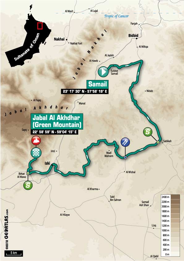 4ª Etapa (Jueves 14 Febrero): AL SALTIYAH IN SAMAIL – JABAL AL AKHDAR/GREEN MOUNTAIN (152,5 km).  Rutómetro