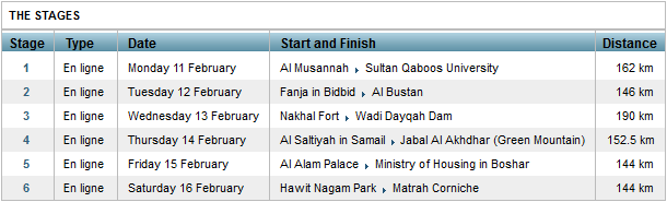 Durante esta semana se disputa una nueva edición del Tour de Omán, carrera por etapas que tiene lugar en el Sultanato de Omán, al sureste de la península arábiga, y que forma parte del UCI Asia Tour.